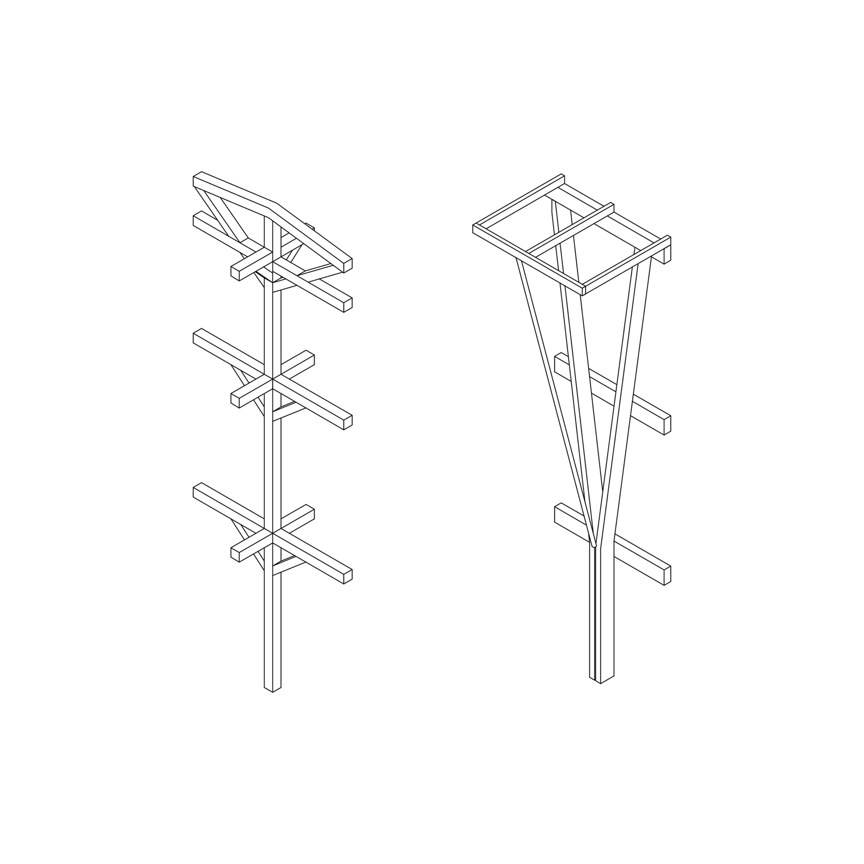The implantation of all the exhibition spaces into the existing building gives visibility to its beautiful wood structure, the visual openings in some floors revealing its tree-like order. To allow an easy evolution of the different workspaces, the perimeter structure of the extension is coupled to a mixed wood/concrete floor system which minimizes the intermediate load-bearing points. The underside of these floors, made of wooden slats, also brings a very qualitative atmosphere to the different workspaces.